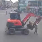 Xót xa người phụ nữ đang đi bộ qua đường thì bị máy xúc cán qua người